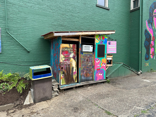 A community fridge and pantry, available at all hours for donations and perusing. On the ALLEY side of 909 Scott Blvd.